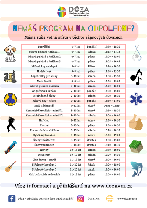 Úvod > Aktuálně > Jsou ještě volná místa v kroužcích